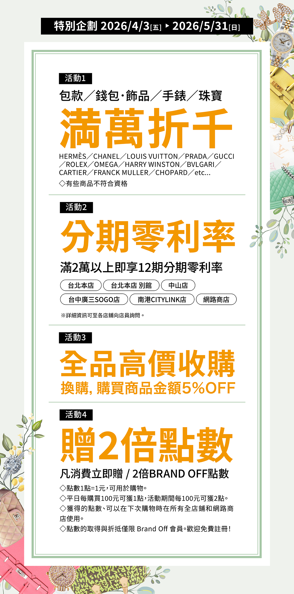 [全品高價收購&換購,購買商品金額5%OFF]等活動,